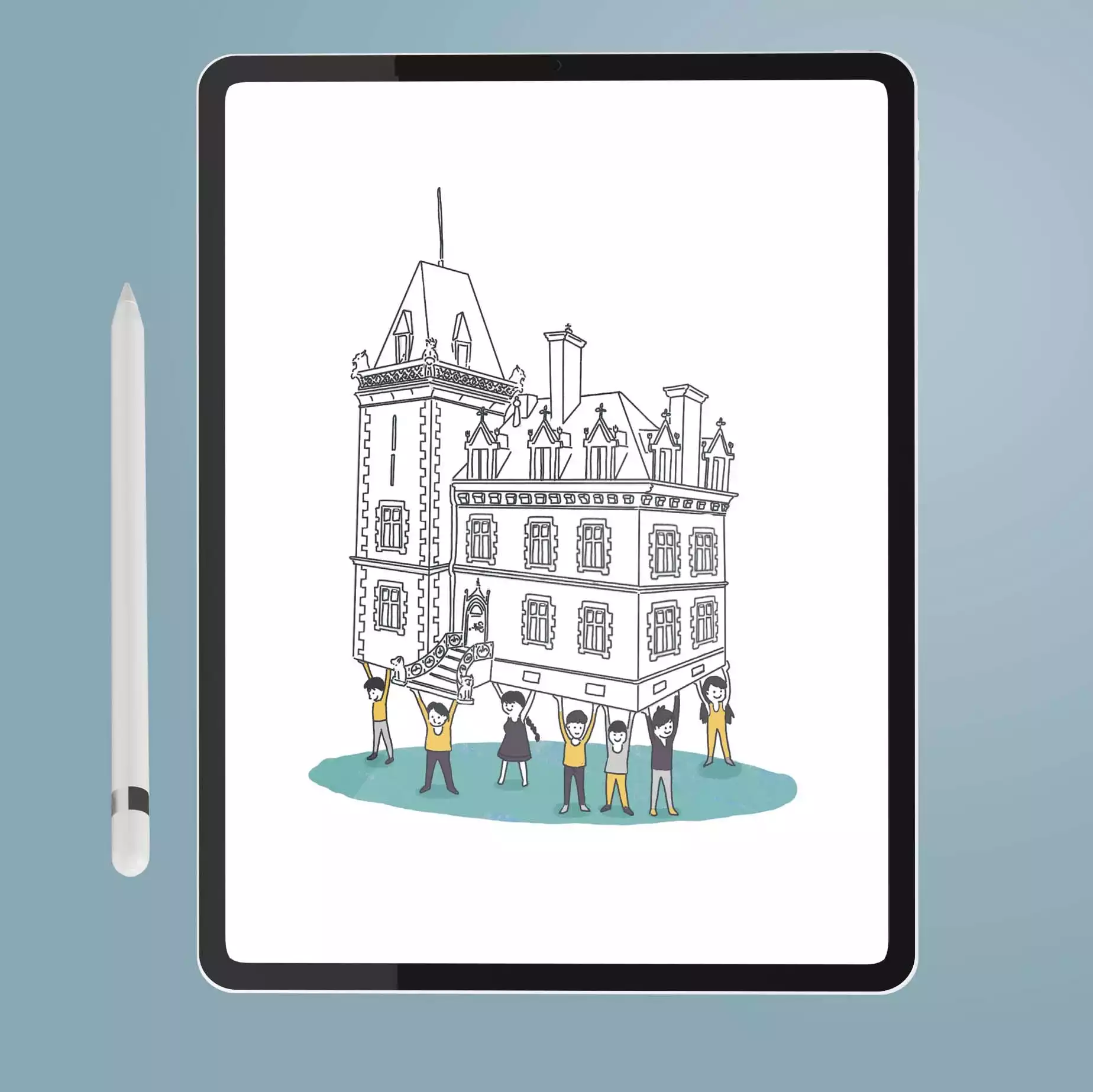 Pour récolter les fonds nécessaires à la rénovation de l’église, la Ville a choisi de vendre une affiche décorative aux habitants. C’est là que j’interviens.